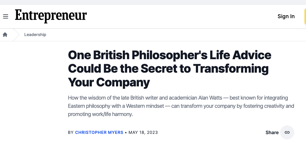 Alan Watts, the esteemed British philosopher, writer and speaker — who popularized Asian and Eastern philosophy with Western audiences — might not be the first name who comes to mind when thinking of business wisdom. However, his teachings actually offer profound insights into the realm of commerce.
